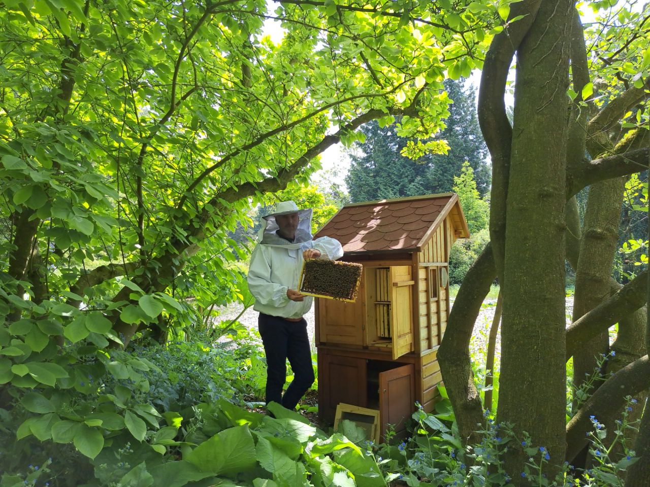 In 2021 schonk de toenmalige Sloveense ambassadeur dr. Rado Genorio tijdens een feestjaar voor de republiek een traditionele Sloveense bijenkast. Deze staat nu op een mooie plek aan de oever van de grote vijver, waar bezoekers hem van dichtbij én veraf kunnen bewonderen. Ondertussen biedt hij onderdak twee bijenvolken. Het aanvliegen van de bijen, beladen met stuifmeel en volgezogen met nectar, kan men door een grote verrekijker aan de overzijde van de bijenkast bestuderen. Als alles goed gaat, kan de arboretumimker deze zomer voor het eerst honing uit deze bijzondere kast oogsten.