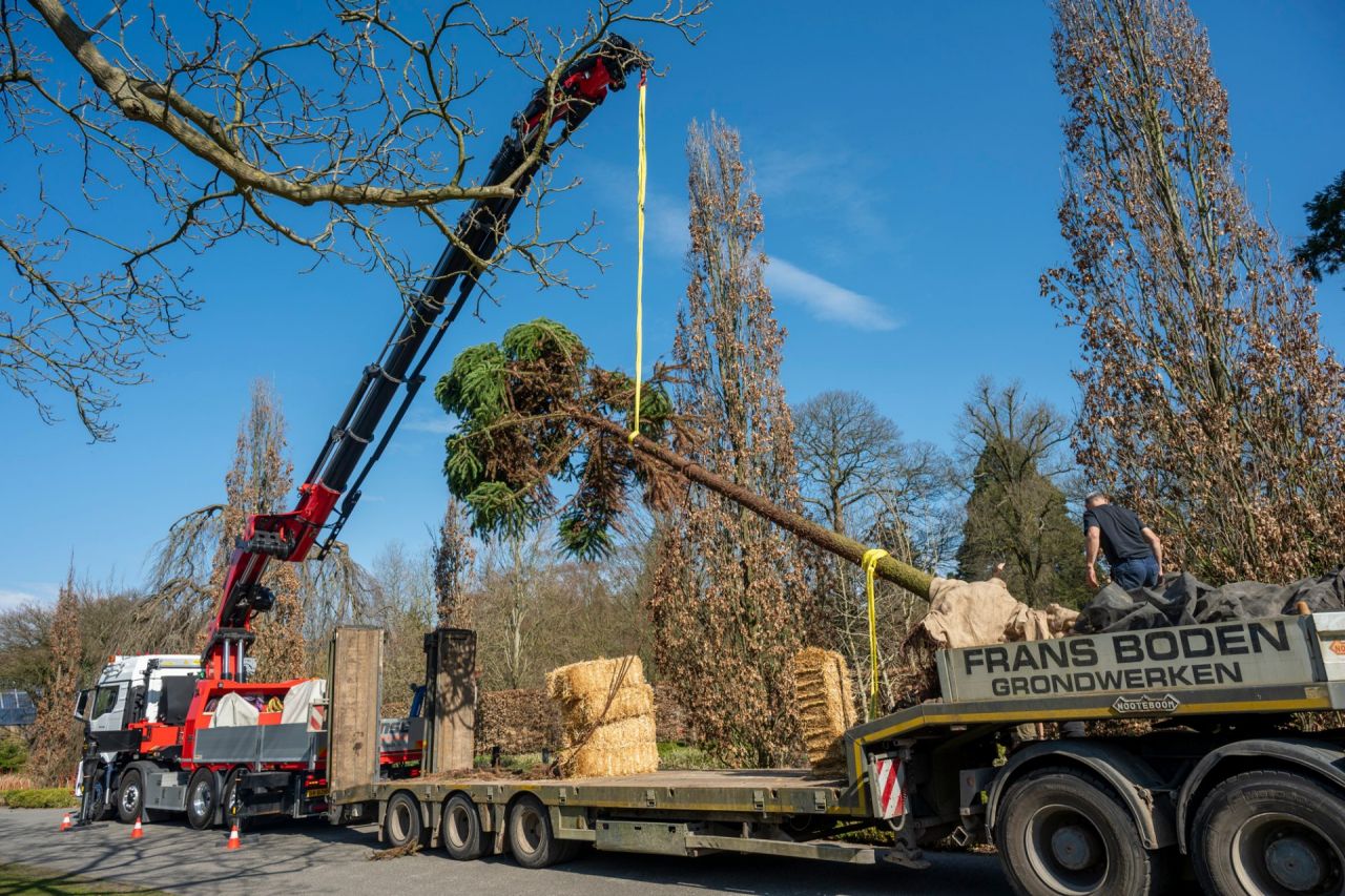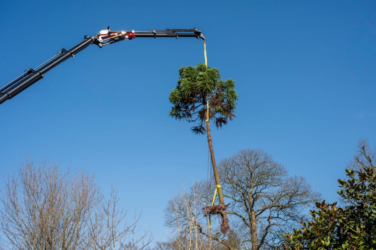 “Met de verplanting zijn we al lang bezig” legt Steven Vanden Bergh , assistent-tuinchef uit: “Ter plekke in Brasschaat is de kluit enkele groeiseizoenen lang voorbereid en de boom werd ook gesnoeid. Om te planten hebben we gewacht tot het voorjaar, het ideale plantseizoen voor een conifeer als deze, we voegden schimmels en voedsel toe en verankerden de kluit goed in de grond. We schakelden een aannemer met grote kraan in, om de boom op zijn plek te tillen. Maar vanaf nu zal de boom het zelf moeten doen.”