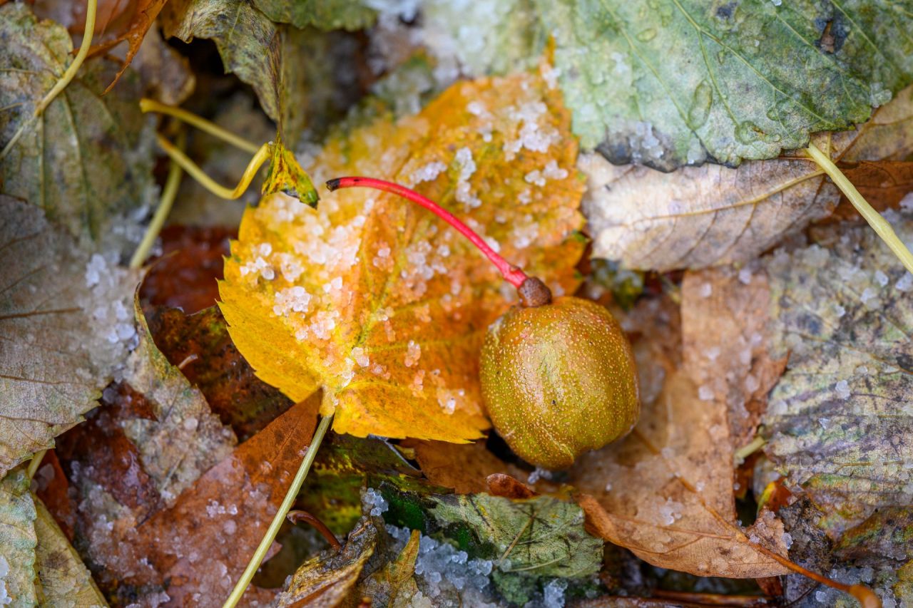 In het najaar hangen de vruchten aan lange stelen in de boom. Het zijn gladde groene bollen, 3 à 4 cm groot. Ze blijven vaak nog hangen tot na nieuwjaar, wanneer het blad al lang gevallen is. Het zorgt voor een erg decoratief winterbeeld. Elke vrucht kan tot wel vier zaden bevatten, je komt dan ook regelmatig bomen tegen met meerdere stammen.