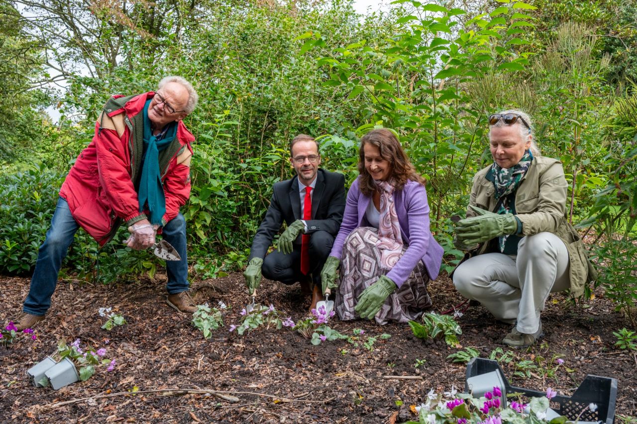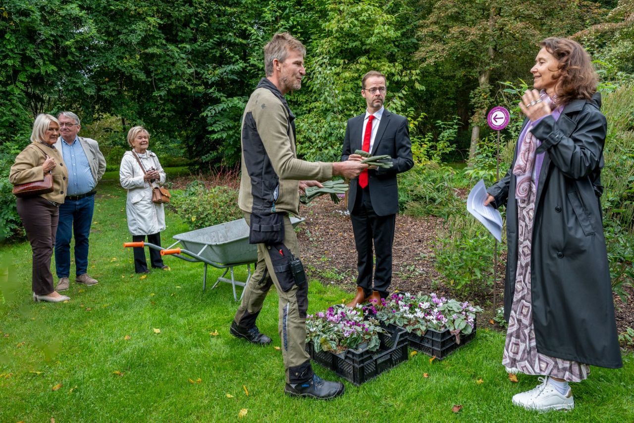 Door het planten van cyclamen, zette Ambassadeur Barbara Sušnik de vriendschappelijke relatie met Arboretum Kalmthout kracht bij. Ze benadrukte in het bijzonder de erfenis van Jelena De Belder: “Ik geloof niet dat het een toeval is dat het een Sloveense was die hier zo’n prachtige natuurlijke tuin creëerde. Slovenië schenkt immers veel aandacht aan haar natuur en biodiversiteit, en de bescherming ervan. Arboretum Kalmthout werkt samen met Arboretum Volčji Potok en Tivoli Park, beide in de buurt van hoofdstad Ljubljana. Afgelopen zomer nog verbleven en werkten hier in Kalmthout twee studenten van de Universiteit van Maribor. En zo zijn er nog talloze voorbeelden van de veelzijdige samenwerking tussen ons.”