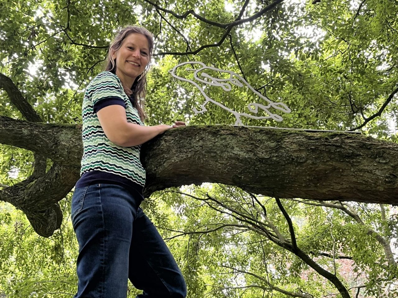 Het Via vogeltje van kunstenares Marjolein Cannoodt streek neer op deKoreaanse haagbeuk in de arboretumtuin.